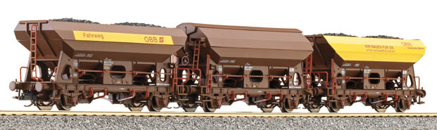 | set tří samovýsypných vozů "Infrastruktur Betrieb" s nákladem |