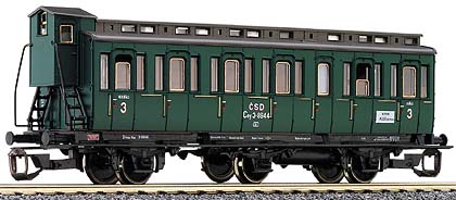 | oddílový osobní vůz zelený s brzdařskou budkou 3. tř. |