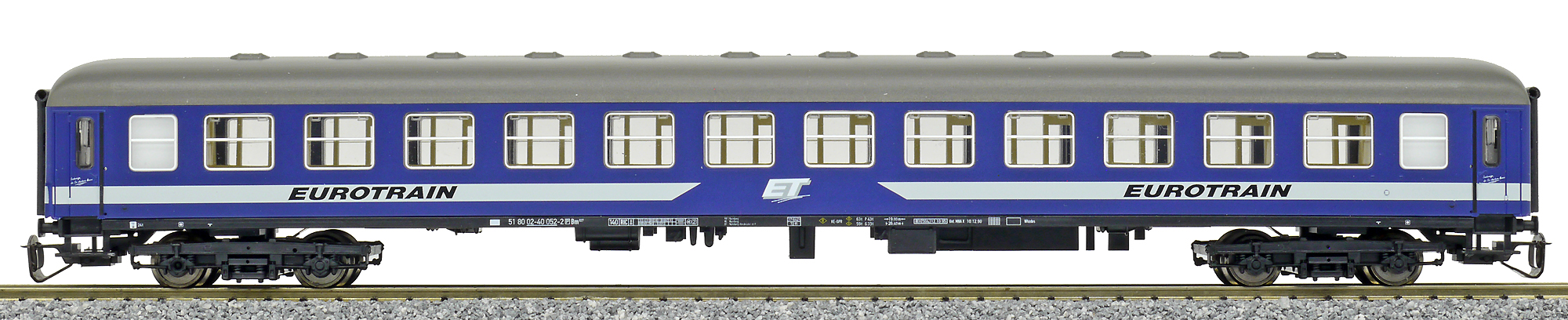 rychlíkový vůz modrý s bílým pruhem 2. tř. „Eurotrain“