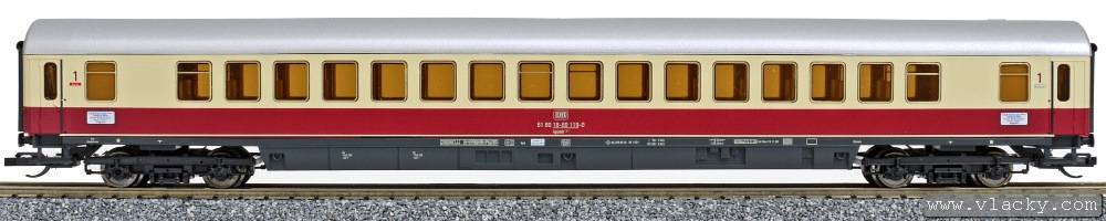 | vínově červený-krémový se stříbrnou střechou velkoprostorový vůz 1. tř. |