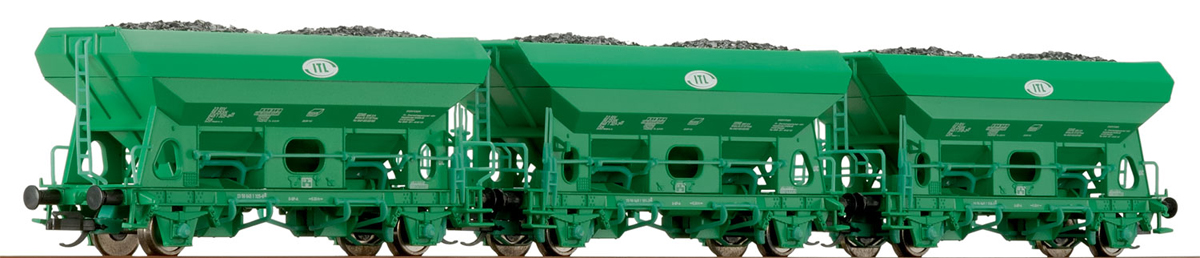 | nákladní samovýsypný vůz zelený s nákladem uhlí „ITL” |