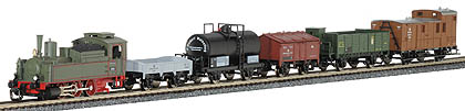 | set parní lokomotivy sa VT a pěti nákladních vozů |
