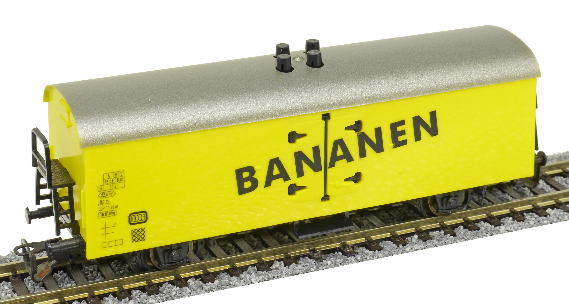 nákladní chladící vůz žlutý s šedou střechou „BANANEN“