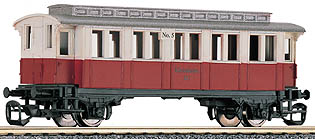 osobní vůz červený-slonová kost s šedou střechou s představky „Kleinbahn AG“
