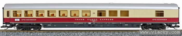 jídelní vůz vínově červený-krémový se stříbrnou střechou