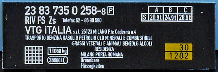 | • 23 83 735 0 258-8 | → | Z - kotlový (cisternový) vůz |