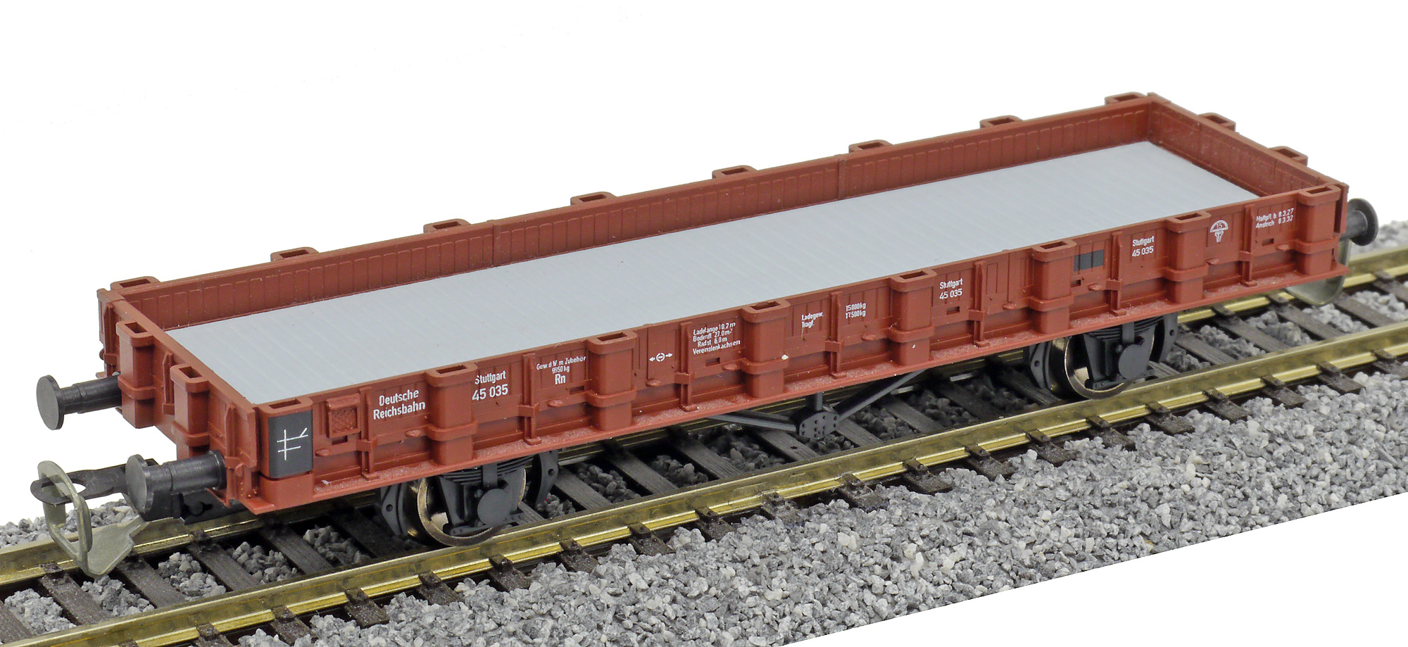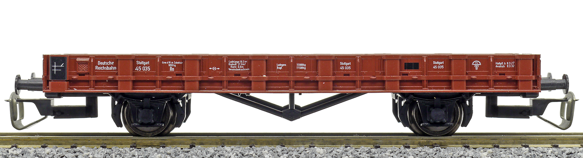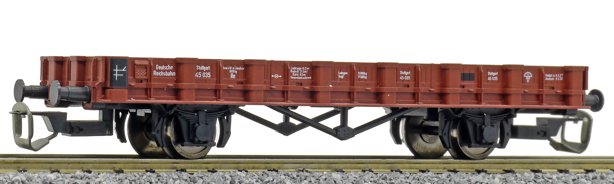 nízkostěnný nákladní vůz červenohnědý s klanicemi