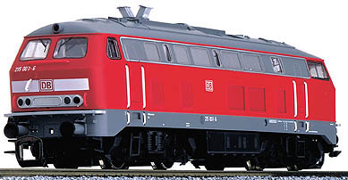 dieselová lokomotiva červená-šedá s černým pojezdem