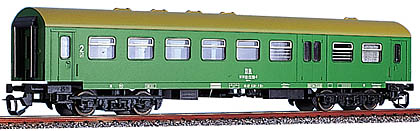 rekonstruovaný osobní vůz 2. tř. s bufetovým oddílem zelený s rezavou střechou