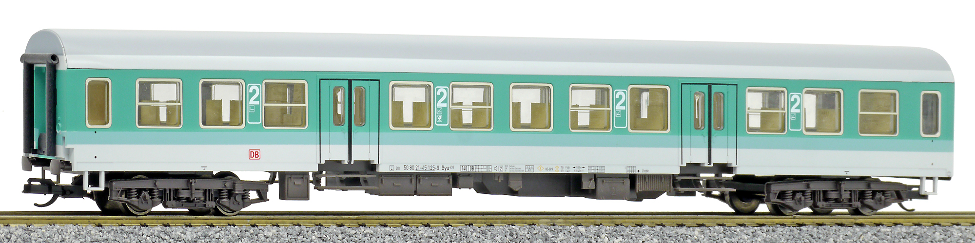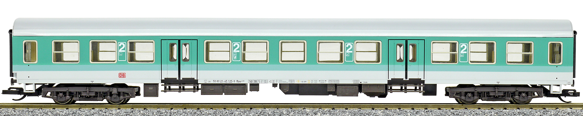 rychlíkový vůz zelený-bílý s šedou střechou 2. tř.