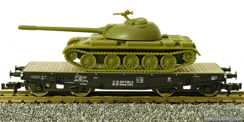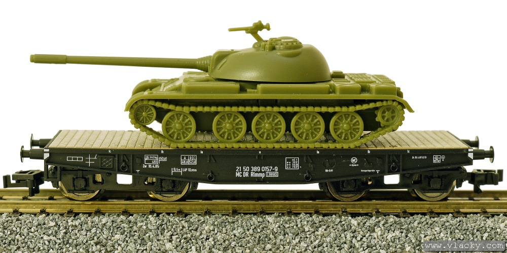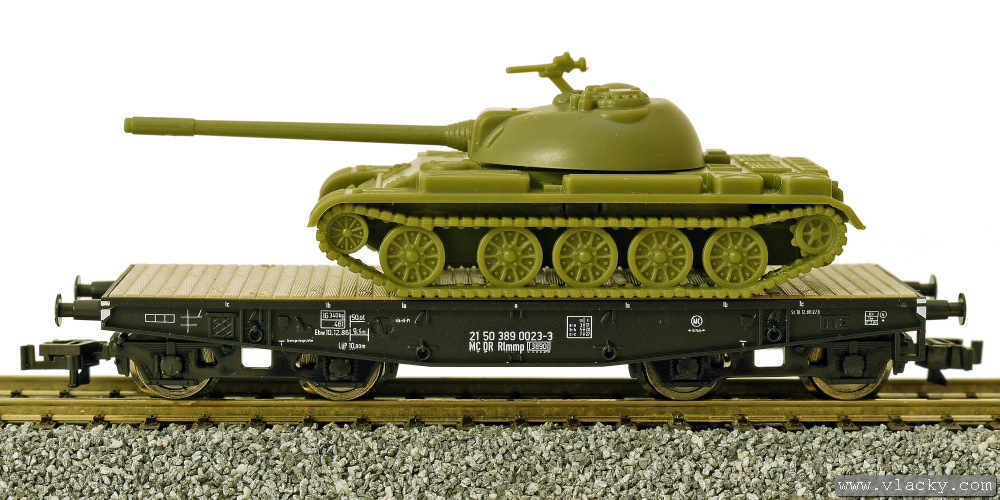 | set čtyř plošinových vozů s nákladem tanků T55 |