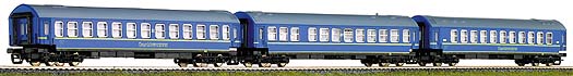 | set tří modrých rychlíkových vozů "Touristenexpress" |