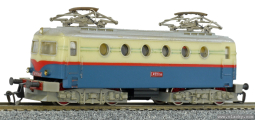 Popis   elektrická lokomotiva modrá-žlutá s šedou střechou
