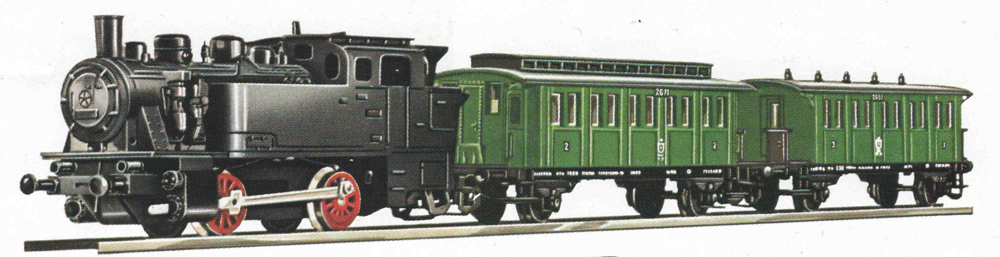 | set parní lokomotivy a dvou osobních vozů pruského typu „Old timer“ |