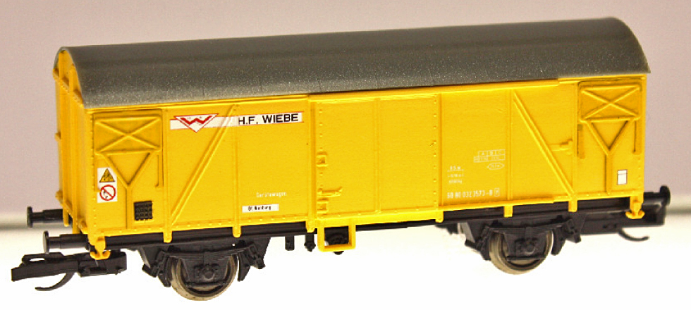 | žlutý se stříbrnou střechou „H.F. Wiebe“ |