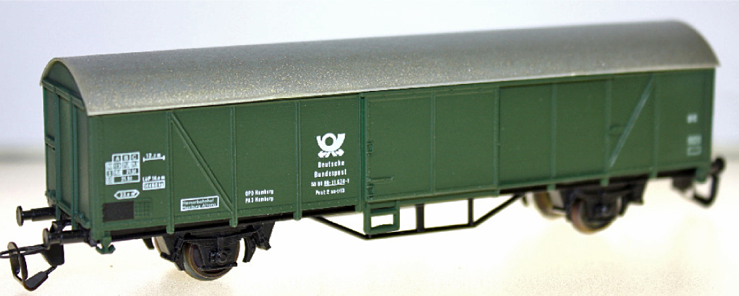 krytý nákladní vůz zelený s šedou střechou poštovní