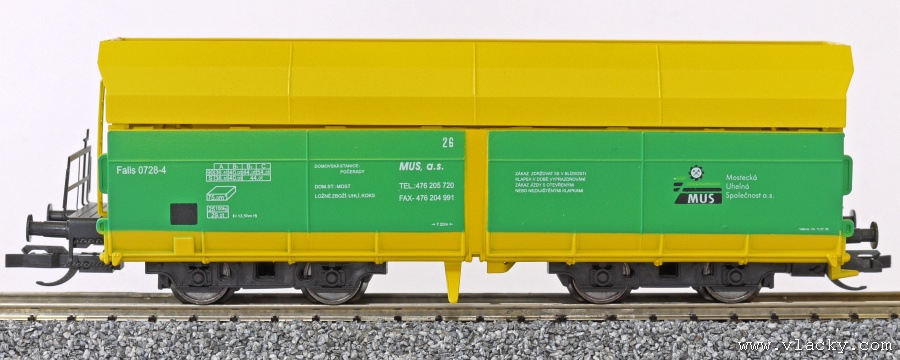 | nákladní samovýsypný vůz žlutý-zelený „Mostecká uhelná společnost a.s.“ |