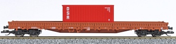 | nízkostěnný nákladní vůz červenohnědý s nákladem jednoho kontejneru 20' |