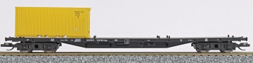 | nákladní plošinový vůz černý s nákladem jednoho kontejneru 20' |
