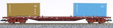 | nákladní plošinový vůz červenohnědý s nákladem dvou kontejnerů 20' |
