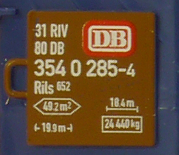 | • 31 80 354 0 285-4 | → | nákladní, s podvozky, pevný rozchod, ve vlastnictví železniční správy, RIV, PPV |