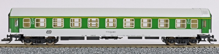 | rychlíkový vůz zelený-bílý se světle šedou střechou 1. tř. |