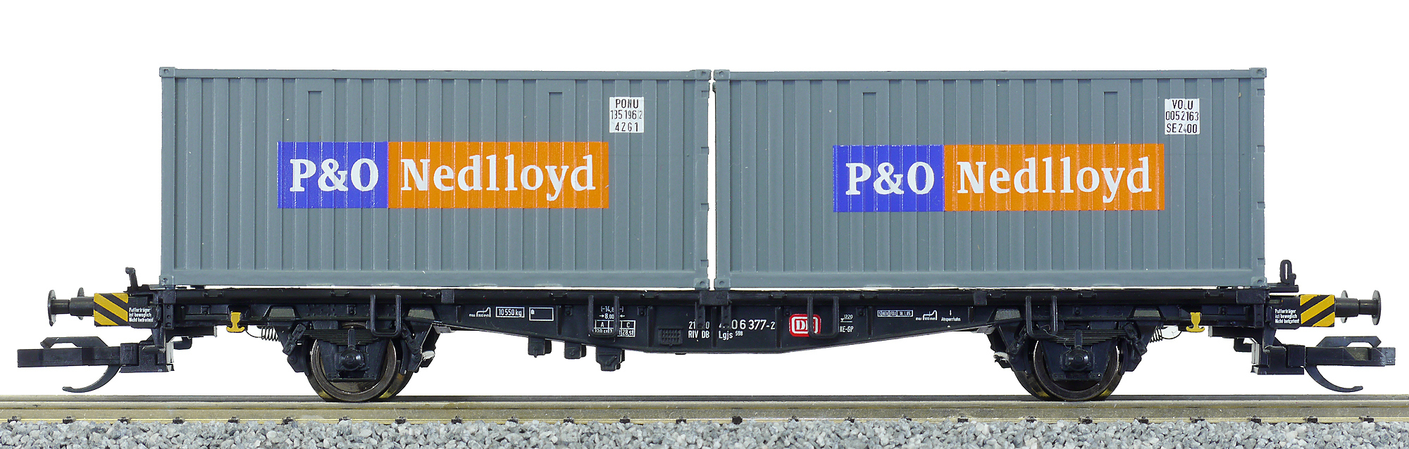 | kontejnerový vůz černý se dvěma kontejnery 20' „P&O Nedlloyd"“ |
