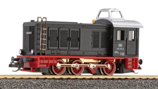 dieselová lokomotiva tmavá s červeným pojezdem a nadstavbou