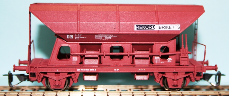 Popis   nákladní samovýsypný vůz červenohnědý „REKORD Briketts“