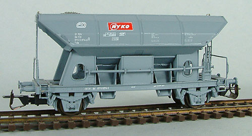 | nákladní samovýsypný vůz šedý „RYKO“ s nákladem |