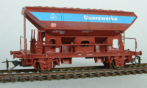 Popis   nákladní samovýsypný vůz hnědý s modrým pruhem „Quarzwerke“