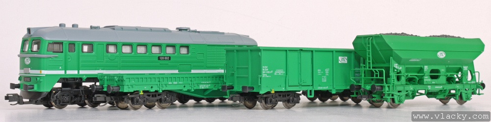 | set dieselové lokomotivy BR 120 a tří nákladních vozů "ITL" |