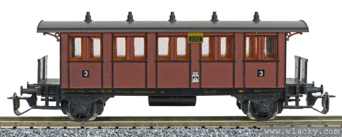 osobní vůz červenohnědý s černou střechou 3. tř.