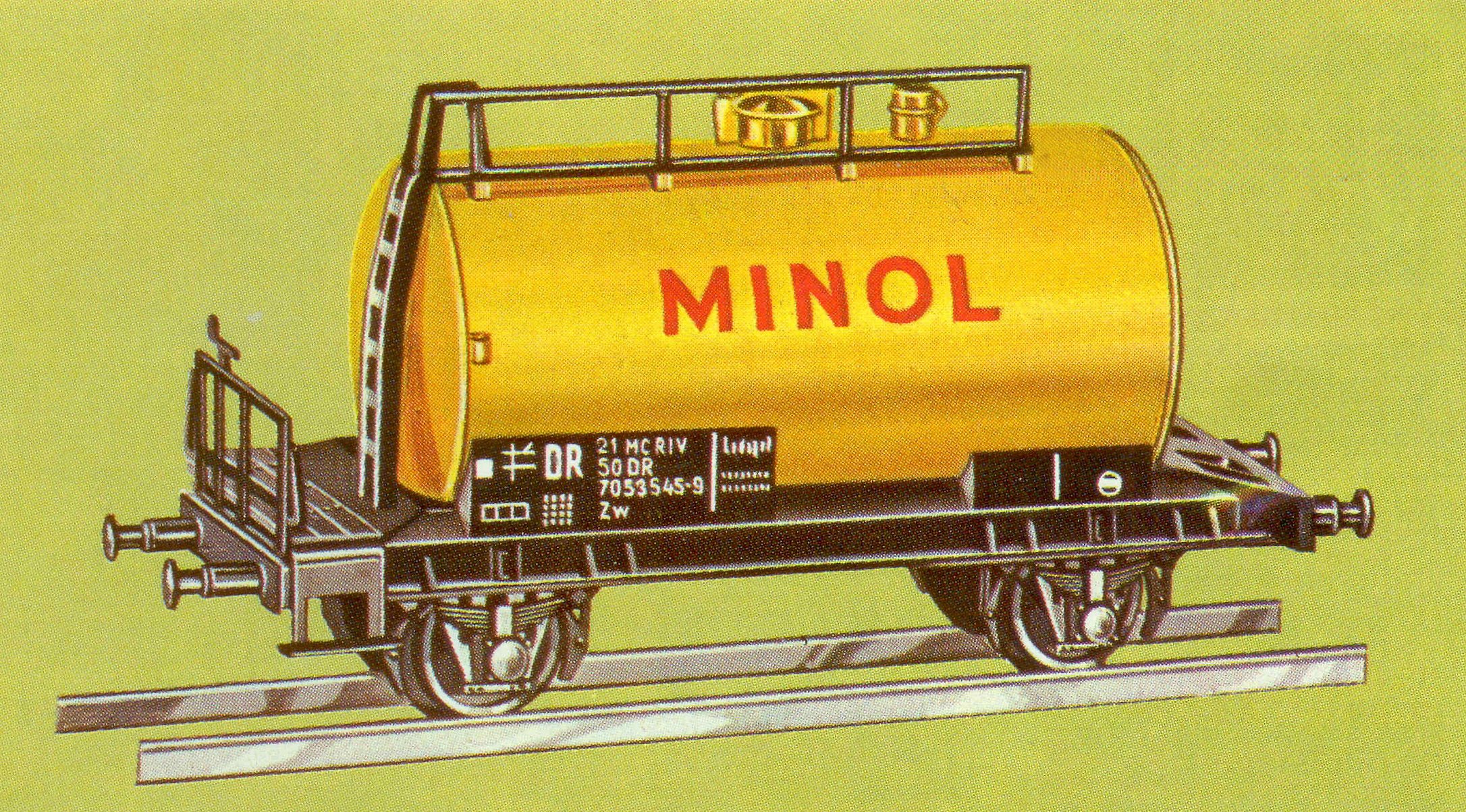 | kotlový vůz žlutý s logem „MINOL“ |