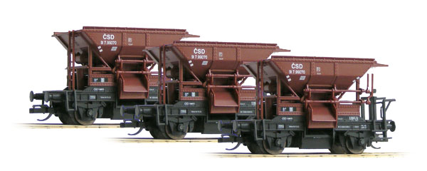 | set tří hnědých samovýsypných vozů typu Talbot s nákladem |