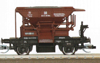 | set tří hnědých samovýsypných vozů typu Talbot s nákladem |