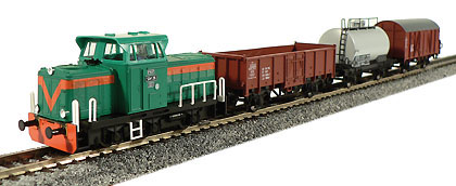 | set dieselové lokomotivy T 334 a tří nákladních vozů |