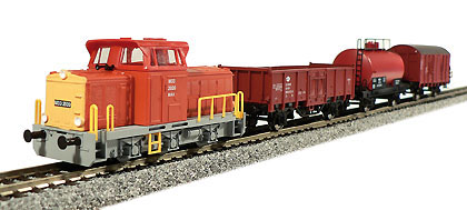 | set dieselové lokomotivy T 334 a tří nákladních vozů |
