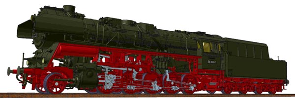 parní lokomotiva černá s červeným pojezdem a kouřovými plechy