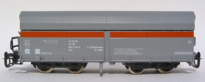 nákladní samovýsypný vůz šedý s červeným pruhem