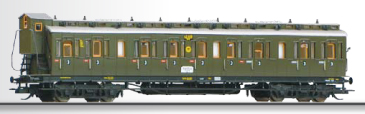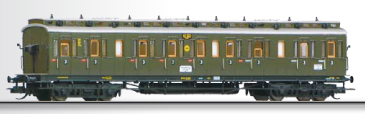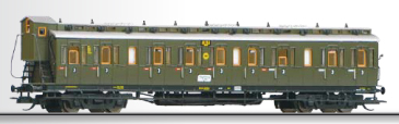 | oddílový osobní vůz zelený s šedou střechou a brzdařskou budkou 3. tř. |