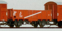| otevřený nákladní vůz červenohnědý s bílým pásem |