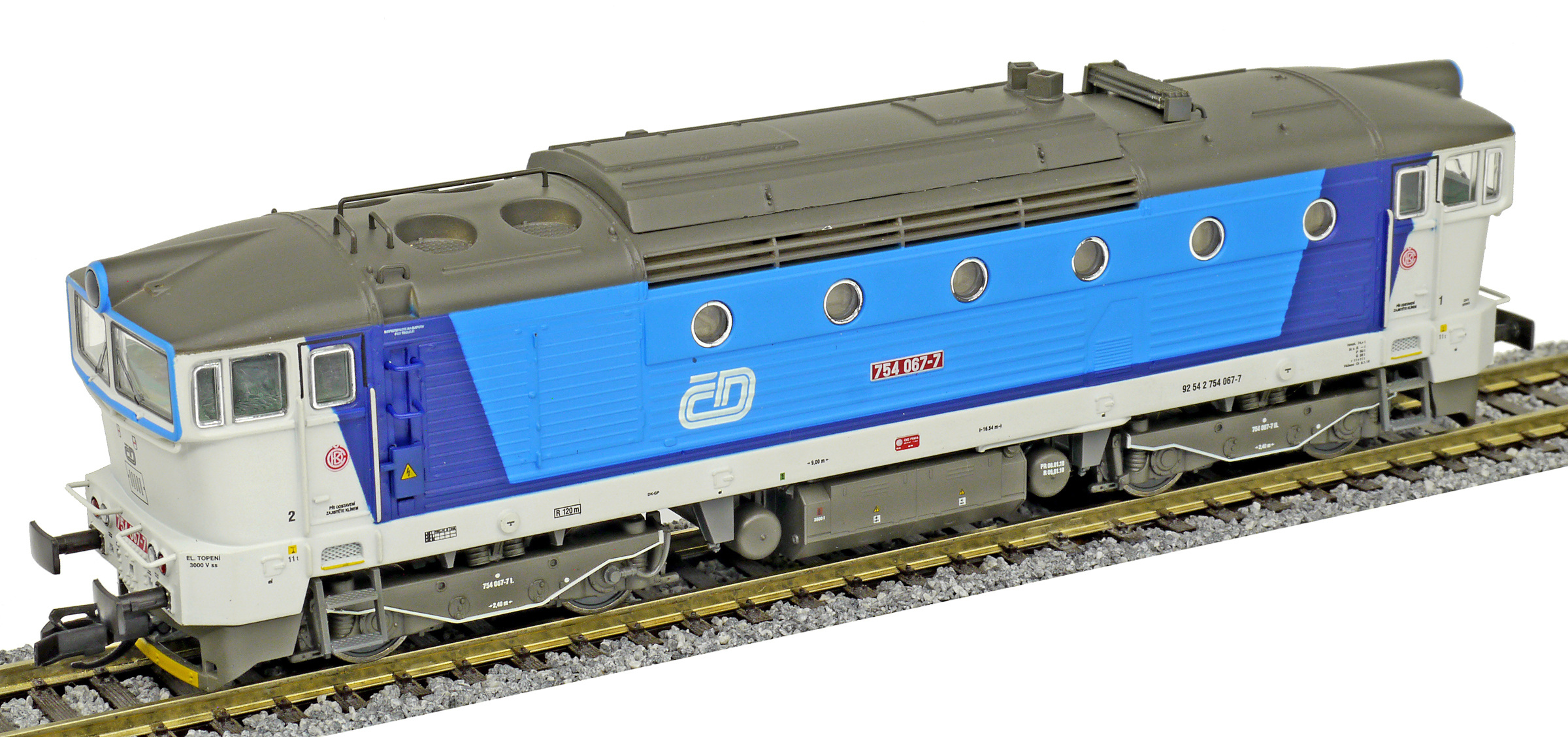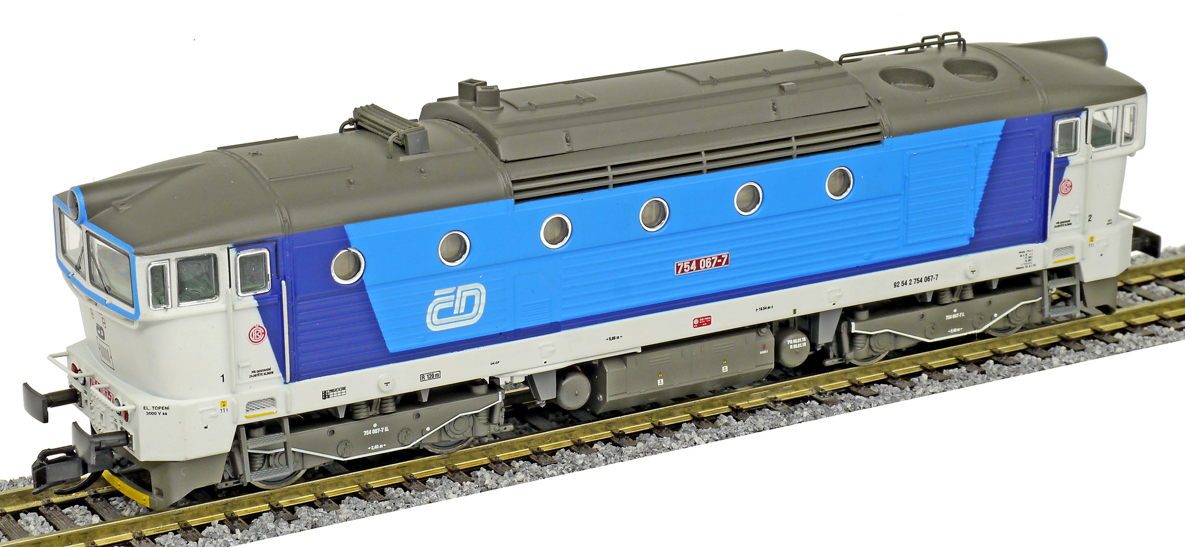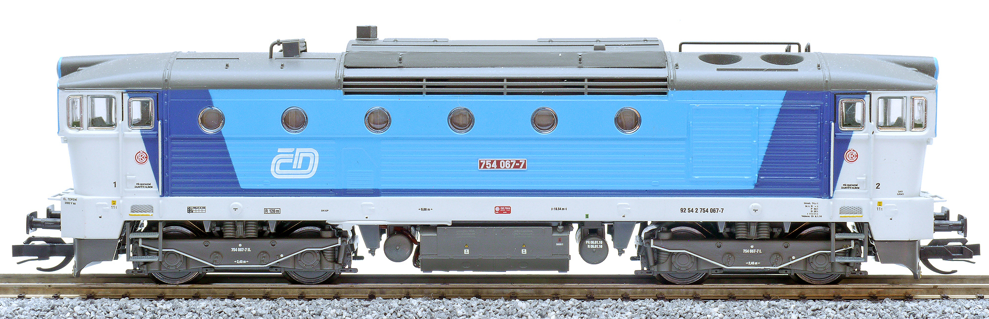 Popis   dieselová lokomotiva modro-bílá v barevném schematu „Najbrt-Design“