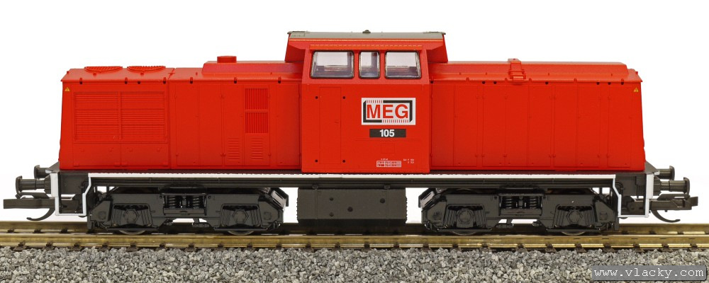 | set dieselové lokomotivy MEG 105 a dvou nízkostěnných nákladních vozů Res |