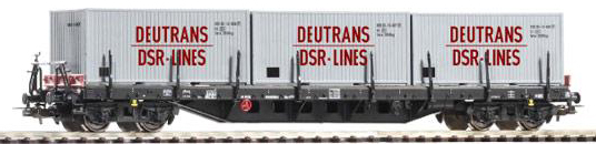 | nákladní plošinový vůz černý se třemi kontejnery 20' „Deutrans DSR-Lines” |