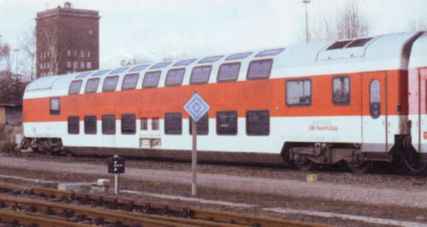 | červený-bílý lůžkový patrový vůz "City Night Line" |