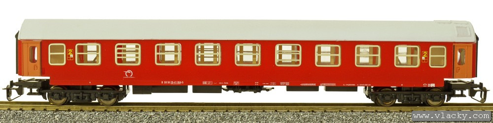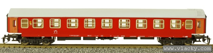 | rychlíkový vůz červený s šedou střechou 2. tř. |