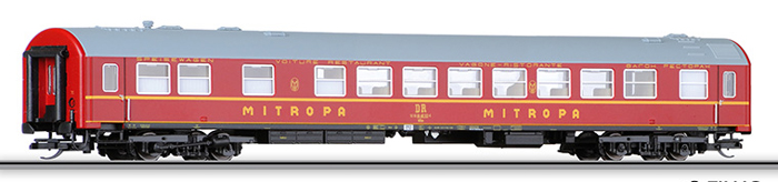 | jídelní vůz červený s šedou střechou „MITROPA“ |