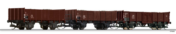 | set tří otevřených nákladních vozů s nákladem uhlí |