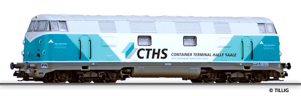 Popis   modr-bílá s černým pojezdem CTHS (Container Terminal Halle Saale)